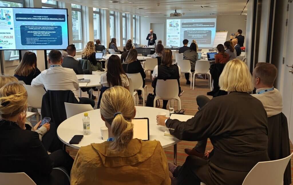 On the first official programme day October 14th, we joined our sister projects MOBI-TWIN, RE-PLACE, and SkillsPULSE in the session “From Insight to Impact: Leveraging data-driven approaches for smarter regional policy.” The event explored how innovative methodologies, including the Regional Attractiveness Index, Local Human Development Index, Regional Policy Dashboard, and skills intelligence tools, can help policymakers respond to brain drain, mobility, and skills shortages.