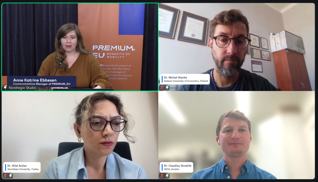Broadcast live from Nordregio’s studio in Stockholm, the session was moderated by Anne Katrine Ebbesen, featuring insights from our PREMIUM_EU Research Team, Dr. Michal Wanke (Cracow University of Economics), Dr. Hilal Arslan (Hacettepe University), and Dr. Claudius Ströhle (IIASA, Austria).